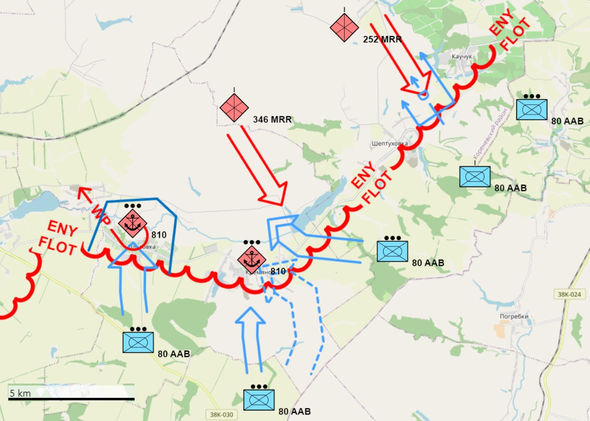 Ezek az ütközetek továbbra is alátámasztják, hogy az oroszok ezen a terepszakaszon (sem) képesek a páncélos és gépesített kötelékeik szervezett bevetésére és a behatolt ukrán támadó erők gyors legyőzésére. Ehhez hiányzik a felszerelés, a célirányos kiképzés, valamint az ilyen kötelékek sikeres bevetéséhez szükséges mindenoldalú biztosítás képessége (ez alól kivételt képeznek a 810. tgy.dd. és a 2. Szpecnaz dd. egyes alegységei). Ehelyett a szenzorokkal telített harcmező jellegzetességei miatt szakaszonként beérkező erőket szinte folyamatosan ellentámadásokra küldik. Amint az egyik alegység megsemmisül, jön a következő. De nem az összes erősítést vetik így be az oroszok. Legalább a felét védelemre rendelik, hogy az esetlegesen arra manőverező ukrán erőkkel vegyék fel a harcot.